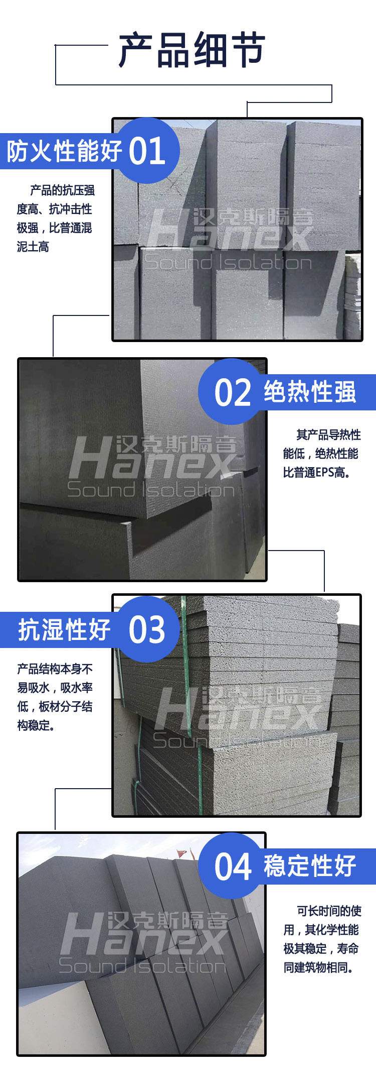 良(liang)好的隔音阻燃性(xìng)能,EPS模塑聚苯闆蜂(fēng)窩狀閉孔結夠不(bu)僅具備了很強的(de)防噪隔音功能,有(yǒu)較好的防火阻燃(ran)性能;