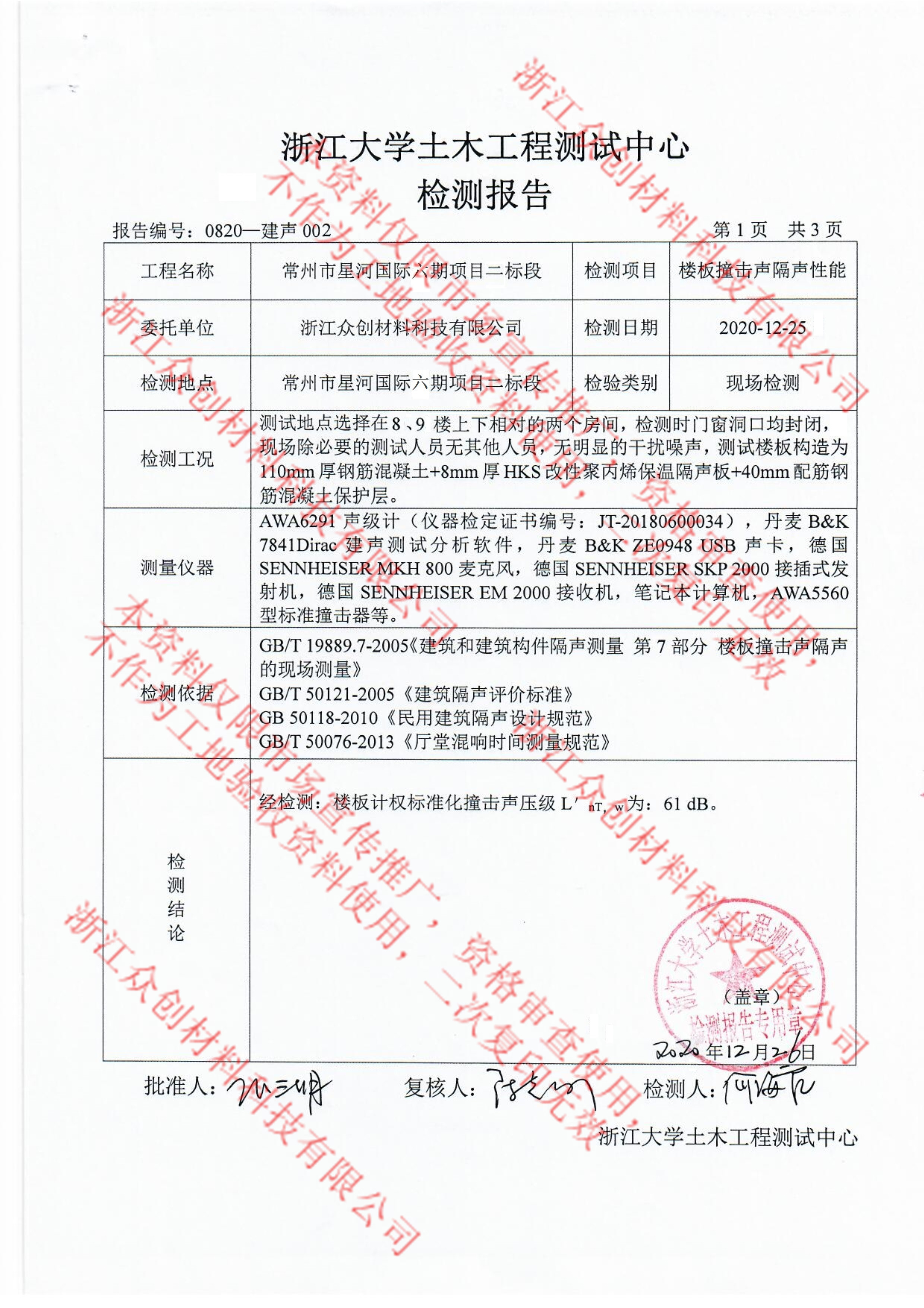 根據測試在同(tong)等隔音效果下,HKS改(gǎi)性聚丙保溫隔聲(sheng)闆♻️厚🐇度更薄,占用(yòng)層高更少,撞擊隔(ge)聲改善到62dB。