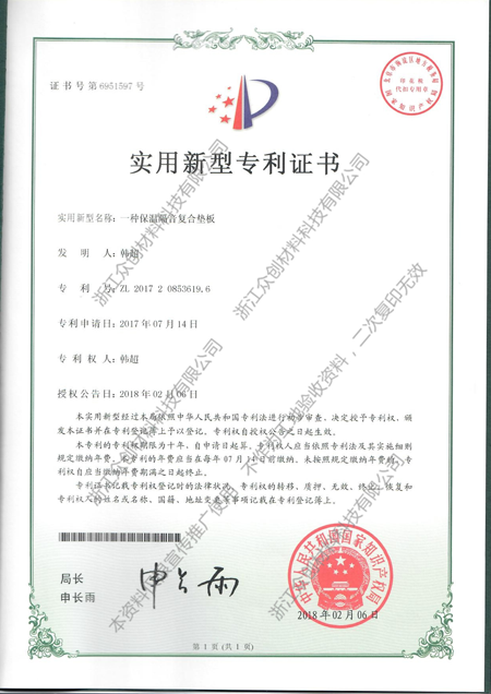 目(mù)前,浙江衆(zhōng)創材料科(kē)技有限公(gong)司已獲得(de):
